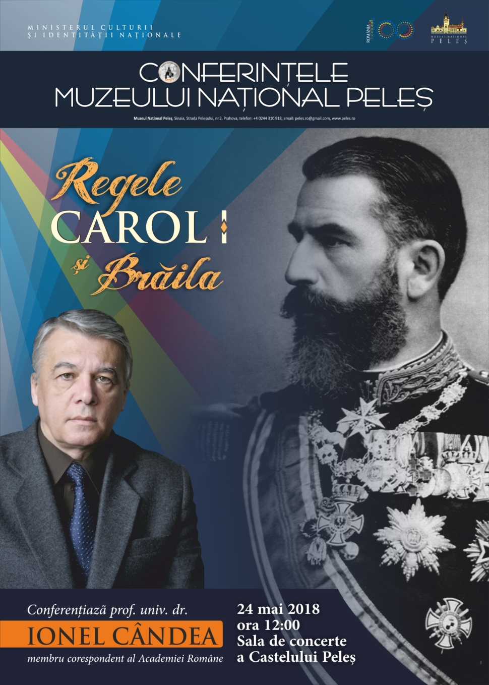 Muzeul Național Peleș vă invită joi, 24 mai, ora 12.00, în Sala de Concerte a Castelului Peleş, să audiați conferința susținută de prof. univ. dr. IONEL CÂNDEA intitulată ,,Regele Carol I și Brăila“.
