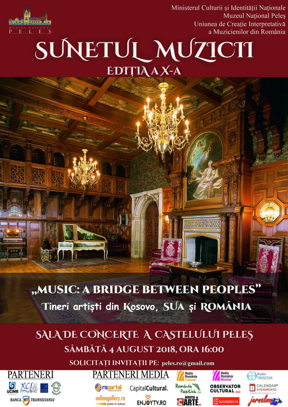 Concertul este organizat de UCIMR, în parteneriat cu Muzeul Național Peleș, un proiect co-finanțat de AFCN. Intrarea va fi liberă, prin rezervare la adresa peles.ro@gmail.com. Evenimentul se va încheia cu o invitație la degustare de vinuri bio oferite de producătorii români Senator Wine.
