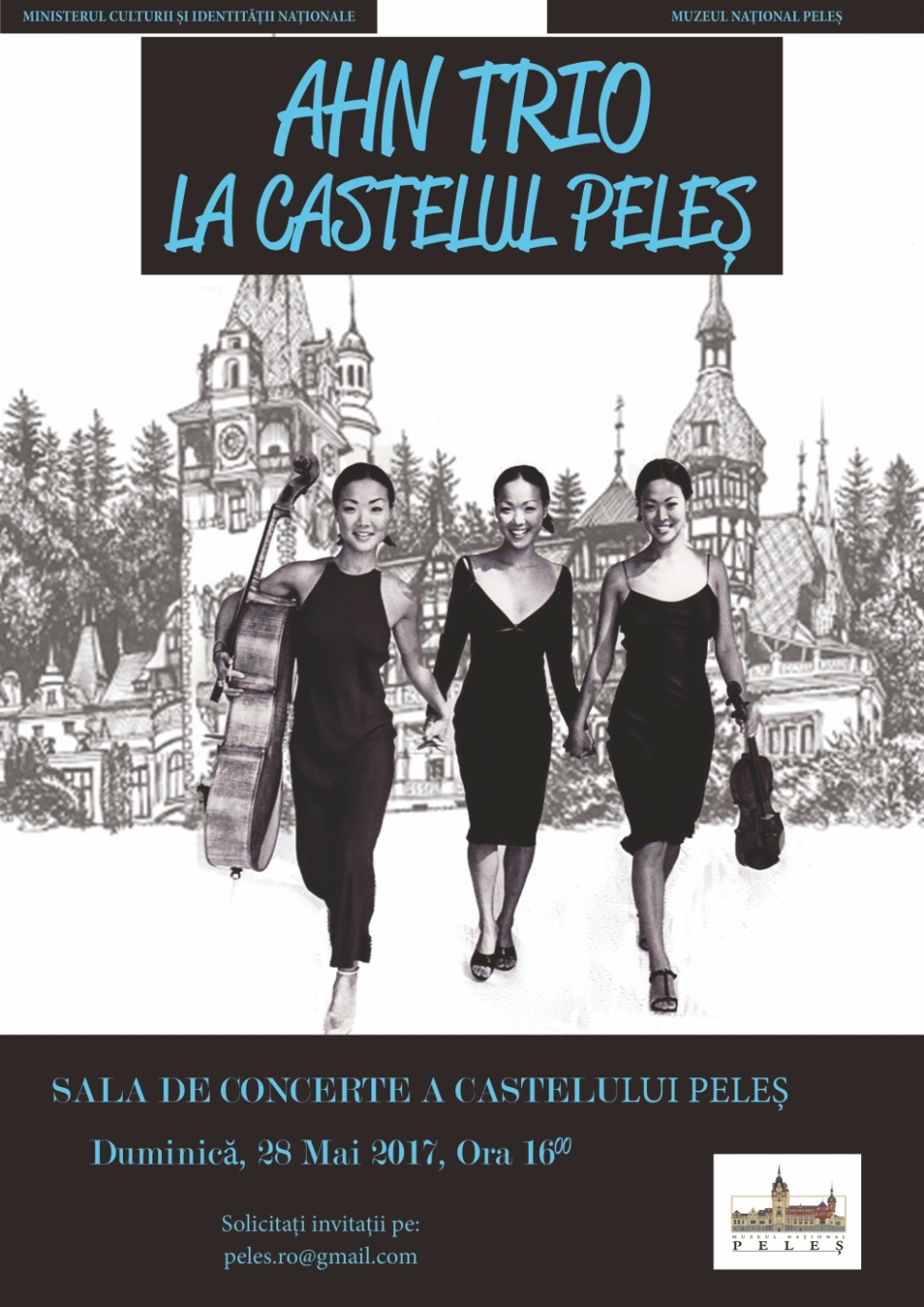 Duminică, 28 mai 2017, ora 16:00 va avea loc în Sala mare de concerte a Castelului Peleș, un recital extraordinar susținut de Trioul AHN, aflat pentru prima dată în România.