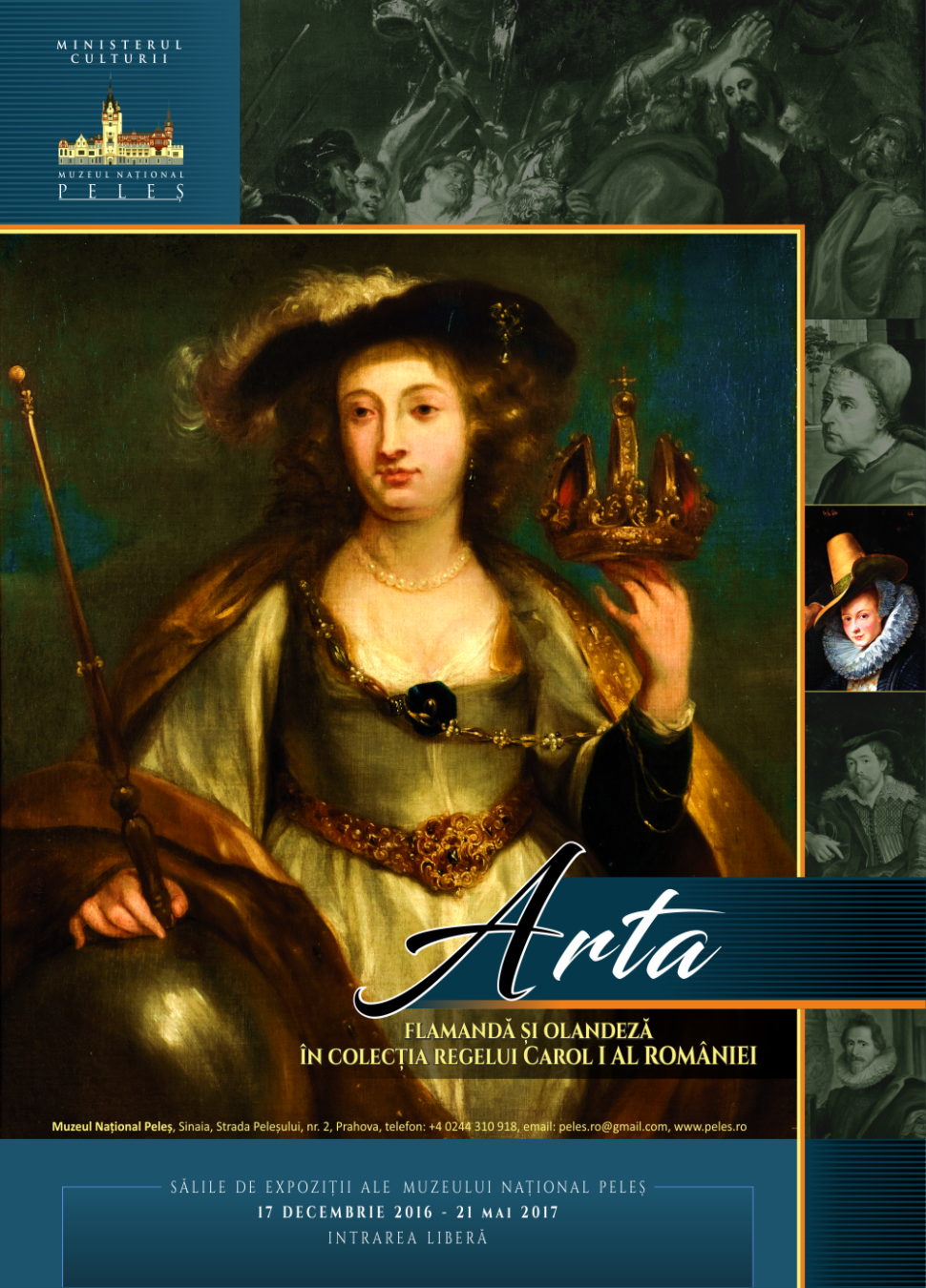 Sâmbătă, 17 decembrie 2016, ora 15:00, vă invităm la vernisajul EXPOZIȚIei ARTA FLAMANDĂ ȘI OLANDEZĂ ÎN COLECȚIA REGELUI CAROL I AL ROMÂNIEI, în sala de concerte a Castelului Peleș.